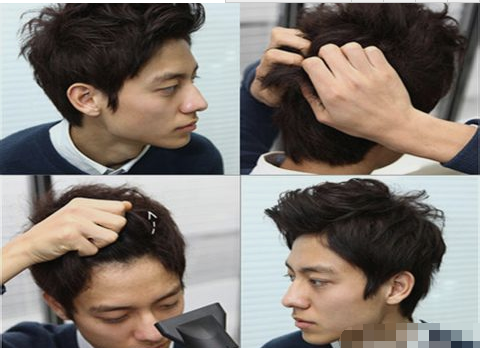 不过还有一款比较好的发型,就是上面这款发型比较容易打理很多,尖脸的男生比较适合这款发型,两边裁剪的时候短,一定要短,这样上面你做个小纹理的发型就好帅气了。▼