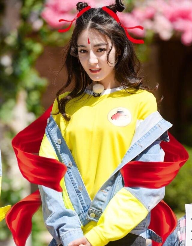 迪丽热巴的哪吒丸子头发型也是漂亮到爆了,这发型长发也是可以哦,不过烫发会更加的的好看。▼