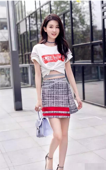 白色的T恤加上短裙超起的有女人味,非常的漂亮,可以说白色T恤是夏天白搭的时尚单品之一,出门到时候还不吸热。