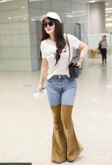 不过想get到这条裤子还真的不是那个人可以的,喇叭裤其实一直很流行时尚,只是冉莹颖这条喇叭裤是两节色调,所以搭配出来不一样的感觉。