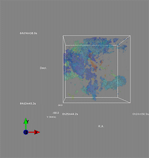 图2 围绕第谷超新星遗迹的分子云泡的三维图 (空间位置和速度维度;图片来源: 周平)