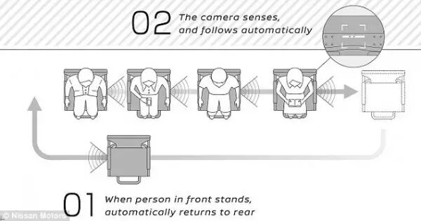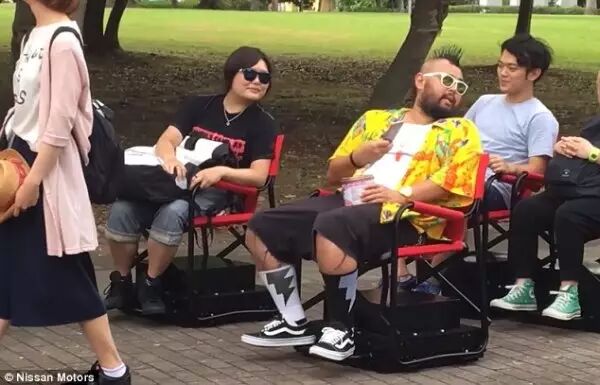 日本尼桑公司针对以上情况表示,我们的神器能够缓解你在排队等候时久站的腿痛。新式“无人驾驶”椅子能够自动识别排队等候的人,并且在前面的人离开后自动往前挪一格。