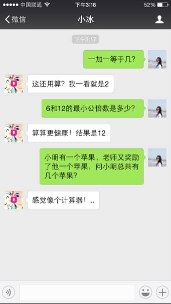 智能对话系统的终极目标是实现人机自由对话,计算机能够响应来自用户的各种问题。其中,自然也包括数学解题。微软小冰实际上已经开始了这方面的尝试,它目前已可以解决比较简单的算术题。