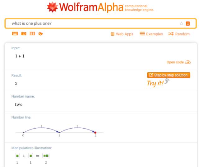 作为新一代的知识搜索引擎的代表,WolframAlpha能理解用户搜索问题并直接给出答案,而不是返回一堆网页链接。其中WolframAlpha被搜索过的一类典型的问题就是数学问题。输入数学题,它能给出数学模型、解题步骤以及答案。数学解题是此类引擎的核心构件之一。