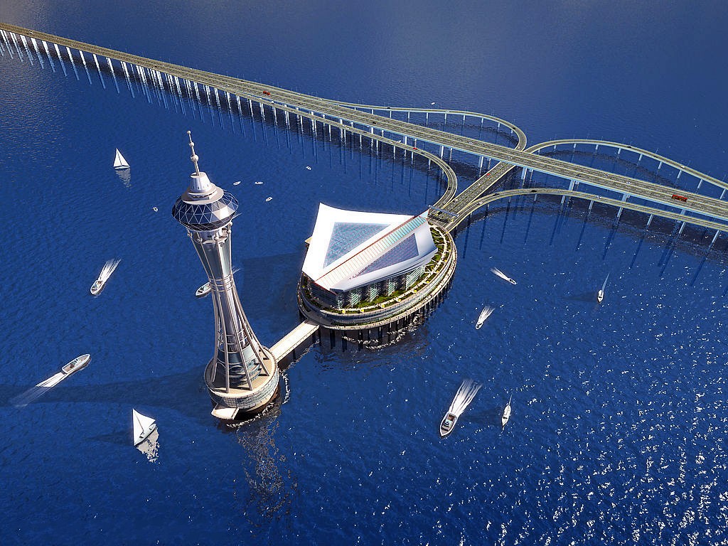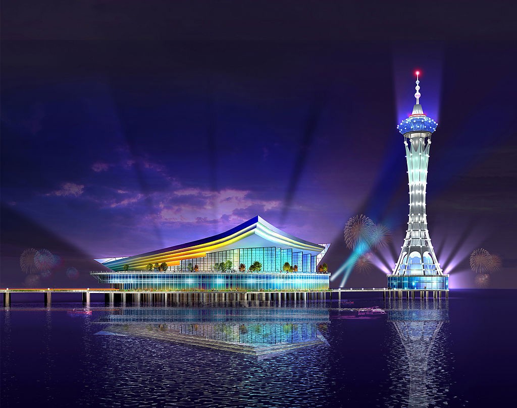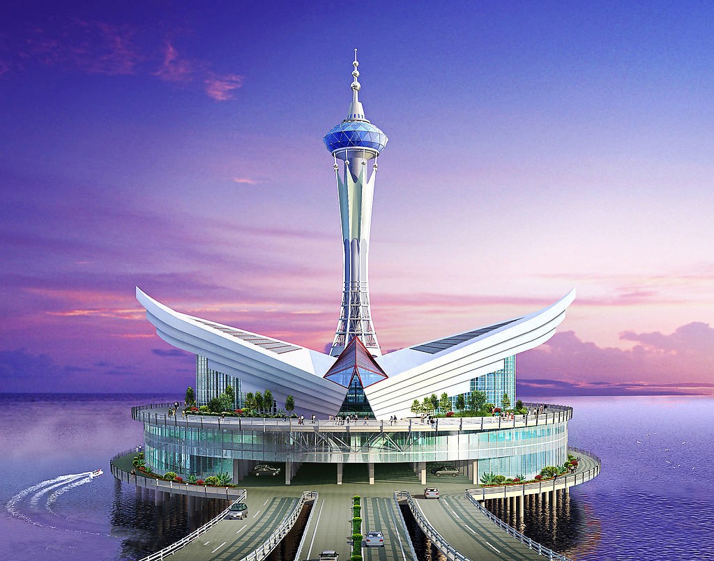 海中观景平台在整个跨海大桥的正中间,也就是18公里左右处。以白色和蓝色为主调,外形就像一只展翅飞翔的雄鹰。
