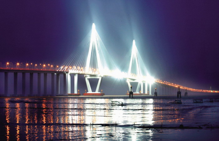 从整体上看,跨海大桥采用了西湖苏堤的形态,借助“长桥卧波”的美学理念,呈现S形曲线,并引入了景观设计概念,使其具有较高的观赏性、游览性。