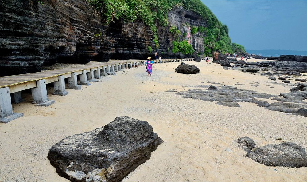 位于广西壮族自治区北海市的涠洲岛西南部,“鳄鱼”山脚下。作为中国最年轻的火山岛,这里的火山岩石千姿百态,各种形状都有,奇妙极了;其火山口景观、海蚀景观、热带植物景观、生物和天象景观独特,主要景点有绝壁揽胜、龙宫探奇、平台听涛、百兽闹海等。