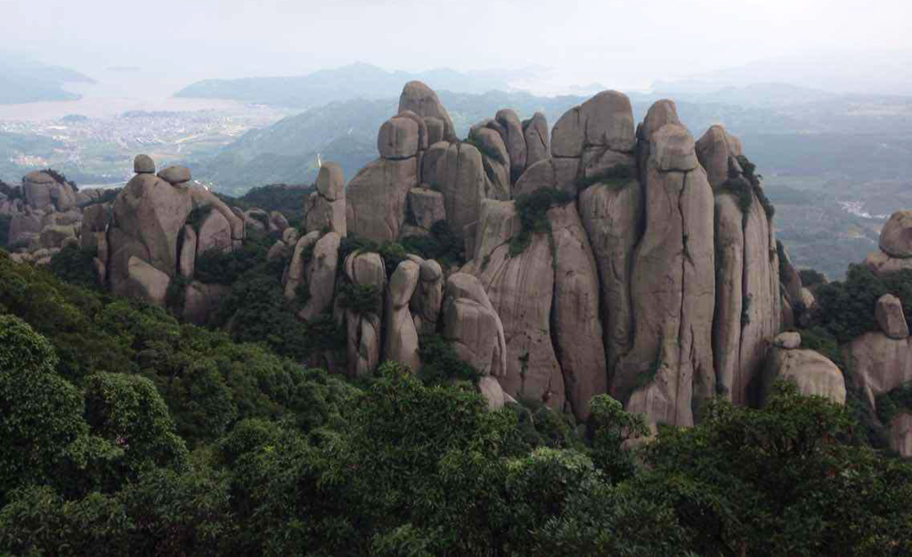 主峰海拔917.3米,位于宁德市福鼎市秦屿镇,挺立于东海之滨,三面临海,一面背山;山海相依、傲岸秀拔,以 “山海大观”称奇。太姥山北望浙江雁荡、西眺福建武夷,三者成鼎足之势,闽人称武夷、太姥为双绝,浙人视雁荡、太姥为昆仲, 构成闽越三大名山。