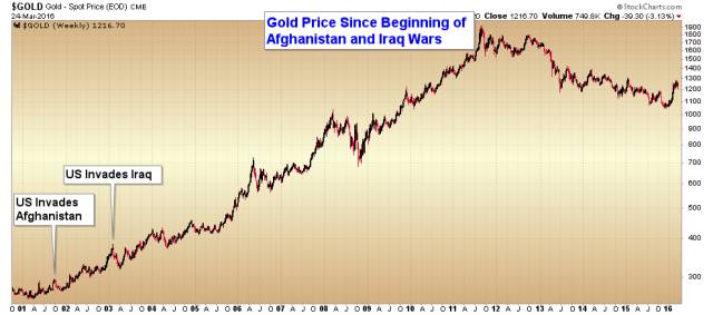 正如历史上其他无法赢得的国际战争,金价在过去15年中告诉人们:政府正在印钞以支付他们无法承担的支出。