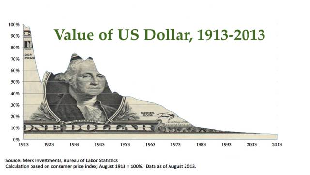 政府这么做的方式很隐秘,一千个人里面甚至没有一个人能发觉这一点。通胀的结果是食品,租金和其它生活必需品价格的上涨。这就是我们支付通胀税的方式。