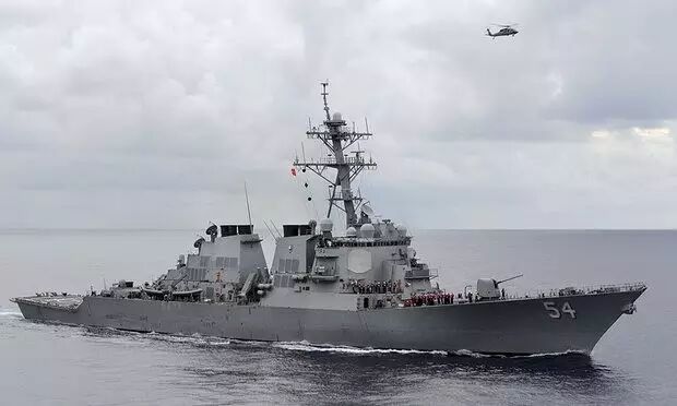 ▲美军“柯蒂斯·威尔伯”号驱逐舰在南海巡航。(路透社)