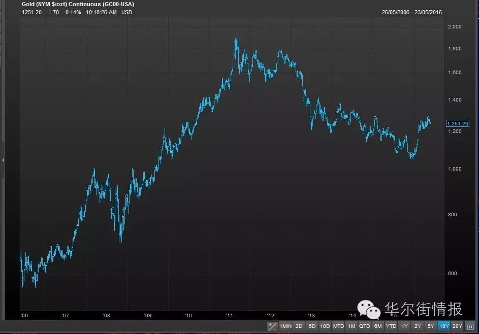 FactSet的数据显示,自2009年9月29日以来金价从来没有收报每盎司1000美元以下。2016年迄今为止,金价已经攀升约18%,为今年收益最好的资产之一。跌至每盎司1000美元以下,则意味着金价较周一的1250美元标价下跌了20%以上。