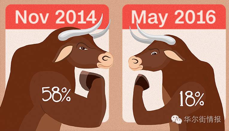 美国散户协会本周的调查指出,低于18%的散户看好美股。这可是自2005年4月以来最低的数据,与2014年9月对股市乐观者达58%相比,也是大幅滑落。