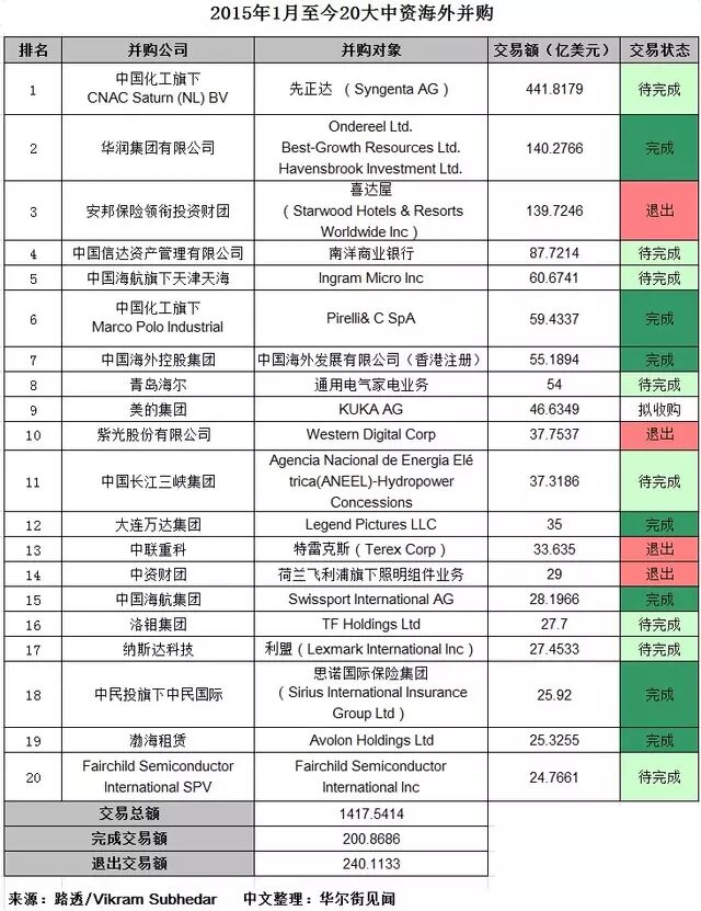 如果从单笔交易额20亿美元以上的超级并购来看,中资企业的进展还不尽人意。路透记者Vikram