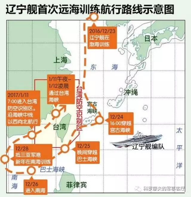 其实这并非辽宁舰首次过海峡。2013年11月至2014年1月,刚刚服役一年的辽宁舰从青岛起航出发,完成了为期37天的南海海域科研实验和训练。往返两次路过台海地区,都走的台湾海峡。