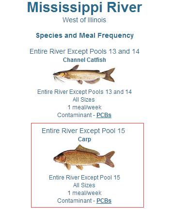 美国方面对密西西比河鲤鱼的警示赫然写着,每周不可超过一条,主要污染物为多氯联苯。同时著名,第15号水库的鲤鱼绝对不可以食用!