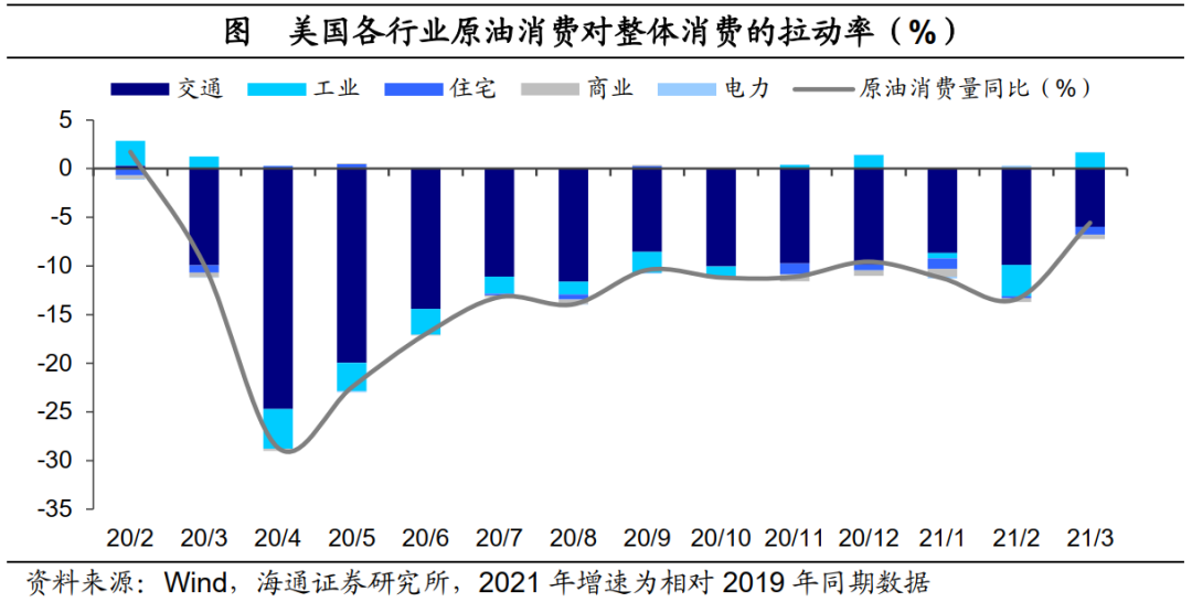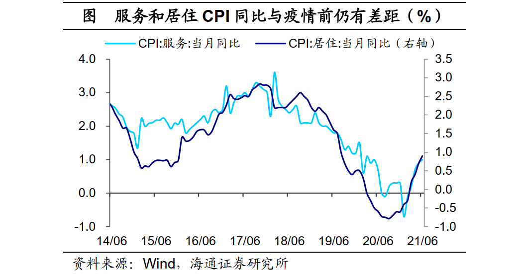 PPI大概率已见顶,但短期下行速度较慢。需求方面,国内投资需求最快的时候已经过去,而美国耐用品需求已经趋于回落,接下来主要是服务业修复。供给方面,资源国短期扰动仍在,但随着疫苗持续接种下半年仍可缓解;国内当前保供政策已见成效,但环保政策执行的影响仍需持续关注。因而多数工业品涨价压力明显缓解。相比之下,由于欧美服务业需求仍在抬升,原油需求端或延续复苏,油价仍有上行空间。