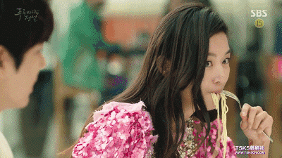 狼吞虎咽吃面的样子全女神快够!