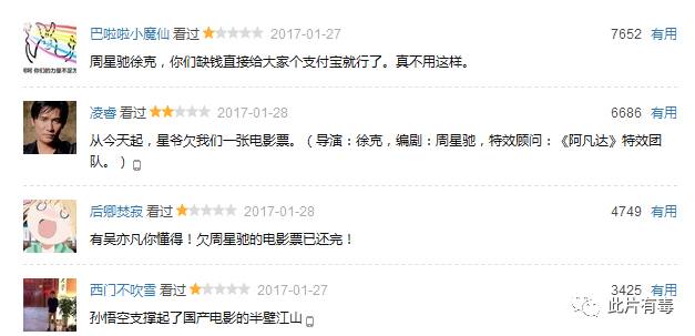 “烂片之王”、“不欠星爷电影票”、“有吴亦凡就拒看”诸如此类
