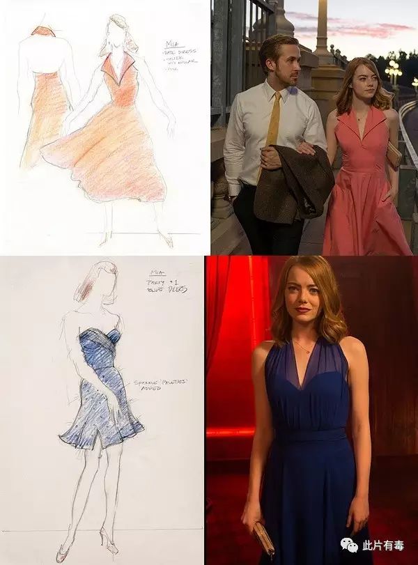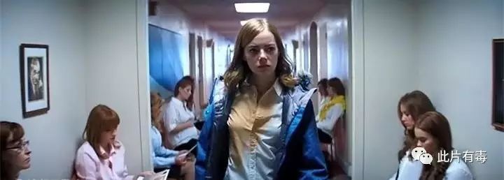 比如通过米娅脱下衣服,露出白衬衣的咖啡渍,走过一群面试女孩中,表示其试镜失败。