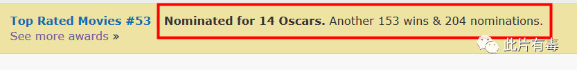 14项奥斯卡提名,追平《泰坦尼克号》保持的20年记录。