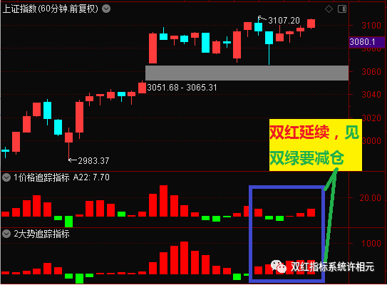 对超短线投资者或要调整仓位的投资者,可以参考60分钟线上的变化,60分钟双红可以持股,60分钟双绿时,要及时减仓。