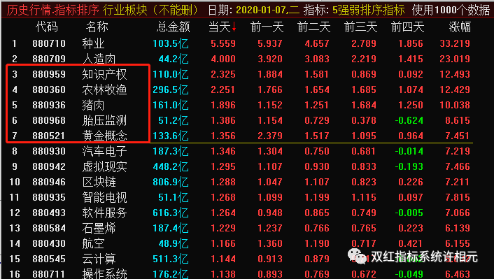 其他板块种业为代表的板块排名如下