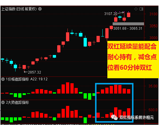 比如,目前的沪指日线双红加量能释放良好。日线双红延续,说明短线可以继续持股。