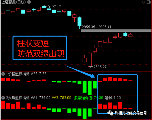 双红指标上昨天出现小小红柱,近乎要翻绿,勉强还在坚持双红。大家要小心点。当然60分钟线上,已经出现了双绿趋势。