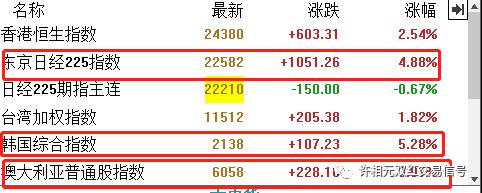 今天市场高开高走,沪指重回2900上方,指标也出现双红,但是细究一下市场的涨跌逻辑,有点担心了。昨天美股并未出现大幅上涨,但早盘时,亚太市场强势高开,而且大幅上涨,看下刚刚收盘的亚太市场,日经,韩国,澳洲都达5%的上涨。