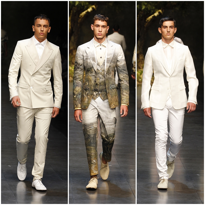 再来几套定番款白色成套西装DG的秀便完美落幕了