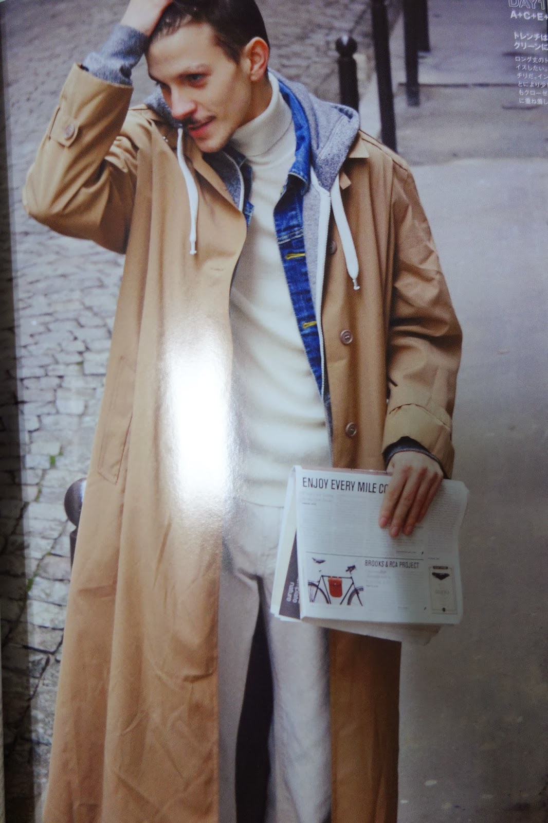 大地色的shop coat很适合与蓝色系的衣服搭配