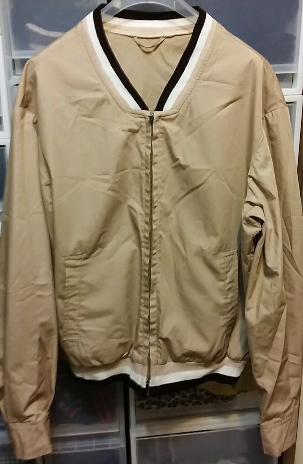 Tim购入的这件米色衣身滚咖啡白罗纹的夹克,