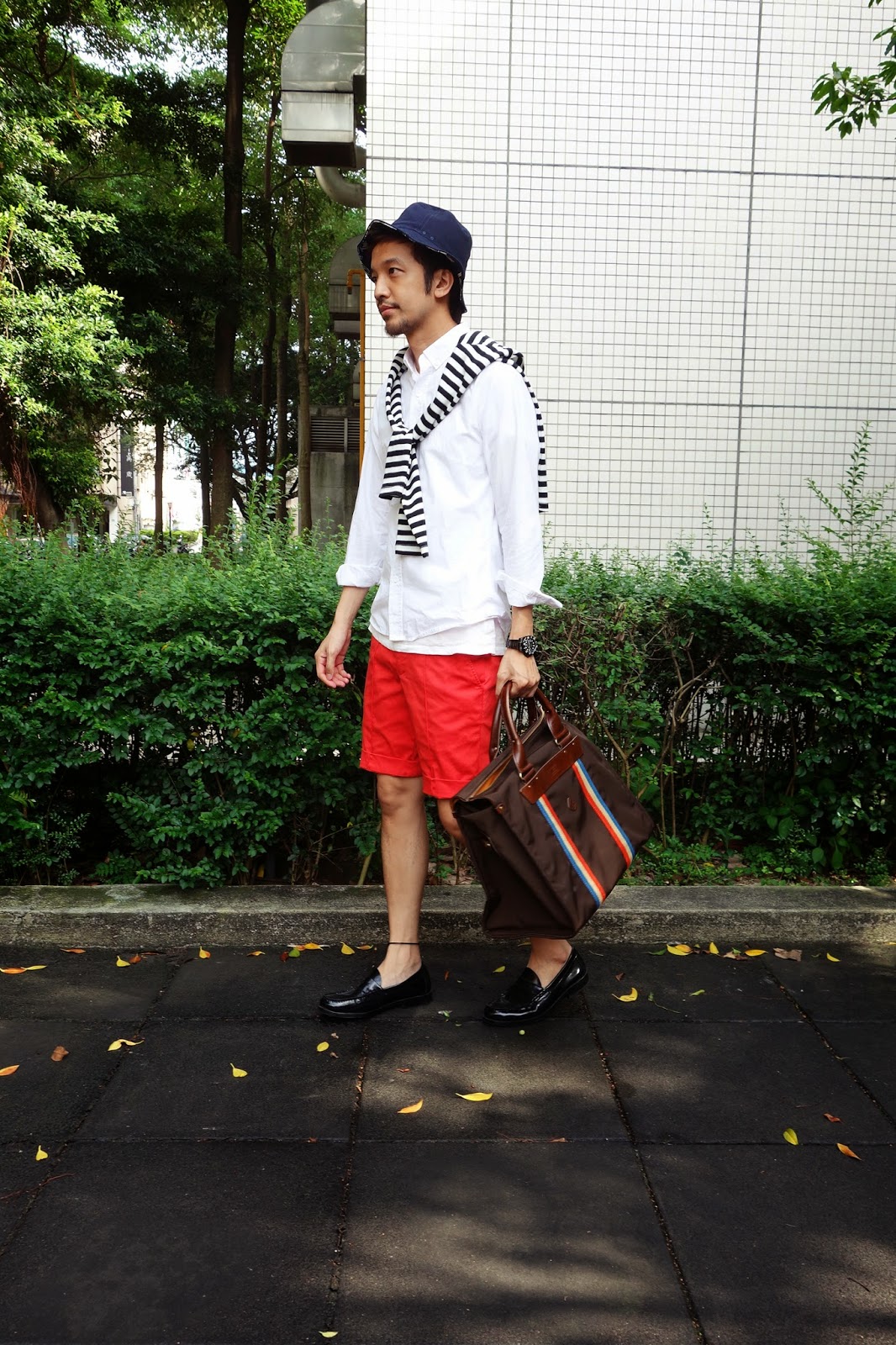 Style 4.白衬衫 x 红色膝上裤 x 黑色牛津鞋