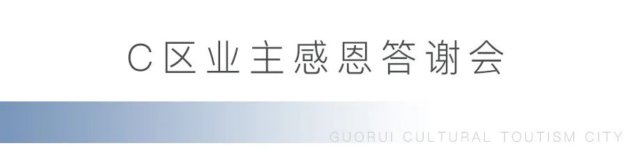 家在文旅城,幸会新邻里,国瑞文旅城满怀对挚友知己的感恩,以及促进邻里情谊升温,准备了一系列专享好礼和趣味活动,专为C区业主们奉上,感谢你们坚定的选择,让我们共同向往美好的生活。