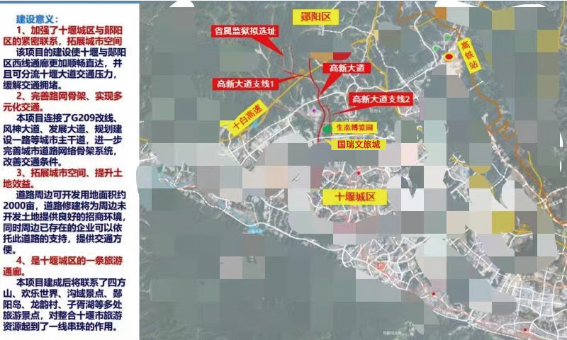 高新大道的建设将加强十堰市城区与郧阳区之间的联系,拓展城市空间,完善区域路网,并将形成一条串联欢乐世界旅游度假区、四方山、子胥湖等旅游景点的旅游通廊,不仅提升通车质量,加码日常出行的便捷性,更将促进城市经济发展,大力提升区域价值。