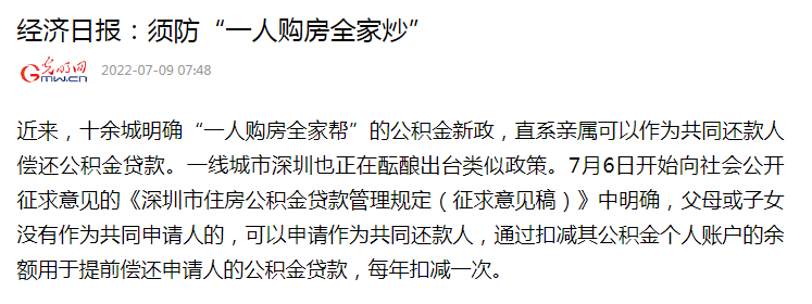 7月9日,经济日报再次发表文章《须防“一人购房全家炒”》指出,“房住不炒”理念已深入人心,如果确有需求,且收入情况足够支撑首付款和月供,再考虑购房才是比较理性的选择。“一人购房全家帮”千万不能变成“一人购房全家炒”。