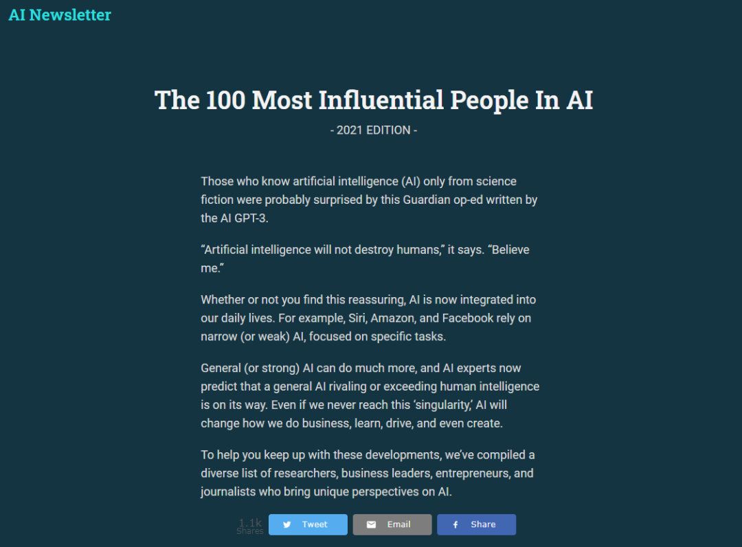 好吧,其实这个榜单是一个叫做“AI Newsletter”的网站推出的,简单查了一下它大概是一个媒体性质的博客网站,在推特上也一直有在更新文章。