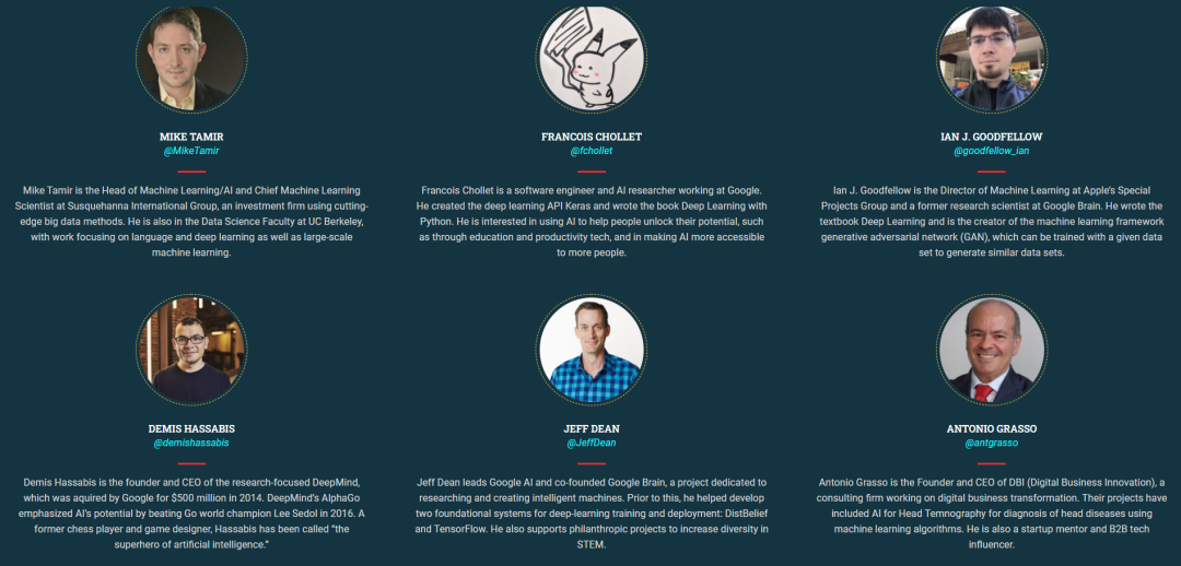 https://p6-tt.byteimg.com/origin/pgc-image/SMkPZBx7F5cWFJ?from=pc不错,三金我至少认出了Keras创始人Francois Chollet、GAN发明人Ian J. Goodfellow、DeepMind创始人Demis Hassabis、 Google AI 掌门人Jeff Dean。
