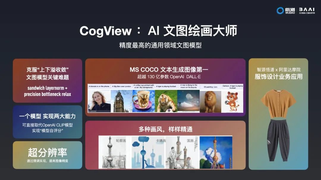 在悟道2.0中,参数量达1.75万亿的超大规模预训练语言模型便是悟道·文汇,基于GLM+P-tuning+Inverse Prompting+CogView多项创新算法,文汇能够学习不同模态(文本和视觉领域为主)之间的概念,实现文生文、图生文以及图文生文等多项任务。