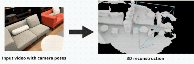 不同于以往基于深度图估计与融合的方法,NeuralRecon直接基于图像特征,预测用TSDF(截断符号距离函数)表示的局部三维表面,并创新地提出了一个联合TSDF重建与融合框架。