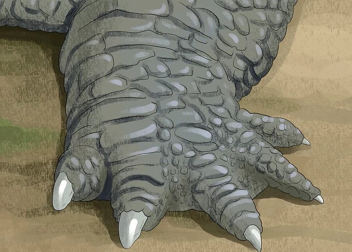 留意腿脚的差异。绝大多数的鳄鱼后腿和脚上都有饰边皮纹,而短吻鳄没有。此外,短吻鳄的脚掌有蹼,而其他品种的鳄鱼没有。
