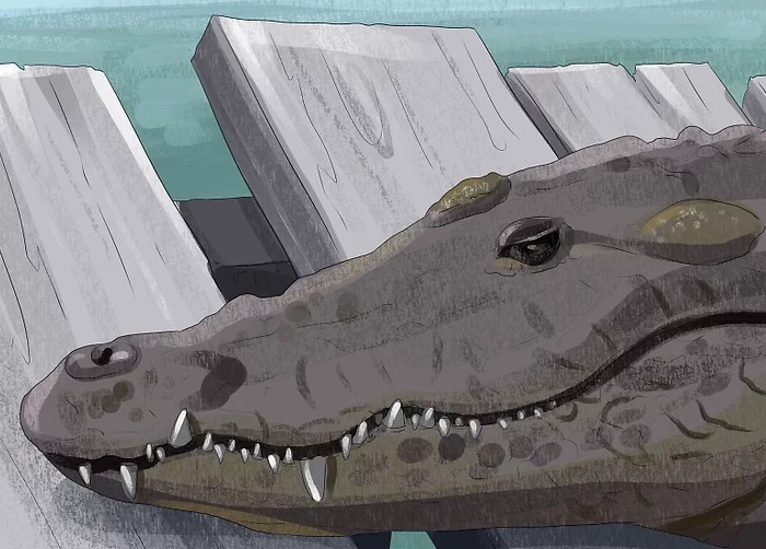 - 其他品种的鳄鱼上下颚几乎等宽,当它们闭嘴时,上下颚牙齿像锁链一样咬合在一起,并且有些牙齿突露于嘴外。当下颚两侧的第四颗牙齿尖耸突出于上唇外时,它看起来就像是在微笑一样。