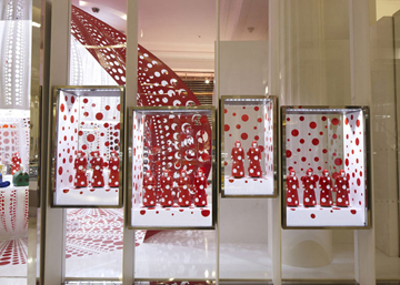 “圆点怪婆婆”作品的魅力早被众多品牌青睐,很多世界顶级品牌都与草间弥生进行跨界合作,推出带有浓厚圆点草间风格的产品,同时也出售艺术商品和版画。