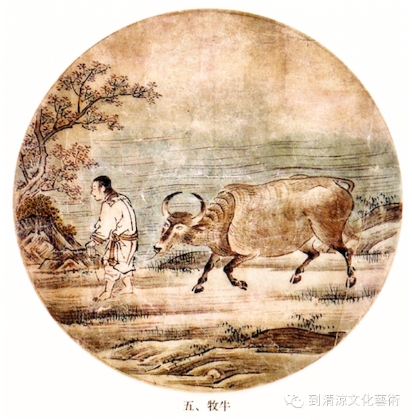 在佛典中,以牛作喻者甚多。如《阿含經》中有牧牛十二法,唐宗意禪師著有《牧牛十詩》,宋師遠大師著有《十牛圖頌》,《放牛經》中有比反十一事,《五燈會元》中有福州大安禪師拜見百丈懷海禪師時以牛比佛性的問答。《景德傳燈錄》記馬祖問石鞏:汝在此何務?答曰:牧牛!同書記長慶懶安稱自己在溈山三十多年不學溈山禪,但牧一頭水牯牛。這些牧牛公案後來逐漸形成圖卷,並由許多禪師依據圖卷作成偈頌,從而成為圖文並茂的禪門心法著作。
