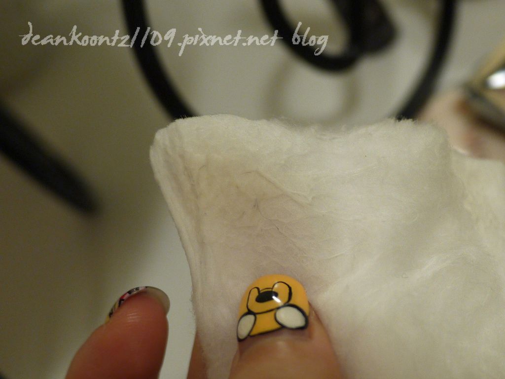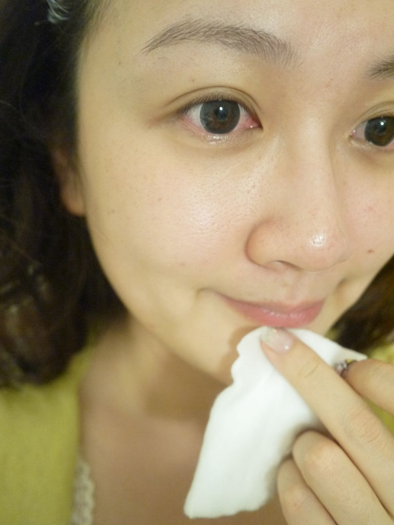 像這樣 從邊邊撕開來 秘訣是化妝水不要完全沾滿整片化妝棉