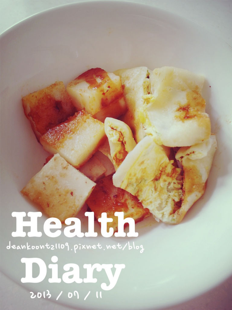 居然早餐買了蛋餅+蘿蔔糕!!!!!!!!!!根本就是要我在早餐就把一天的主食量都用掉嘛!