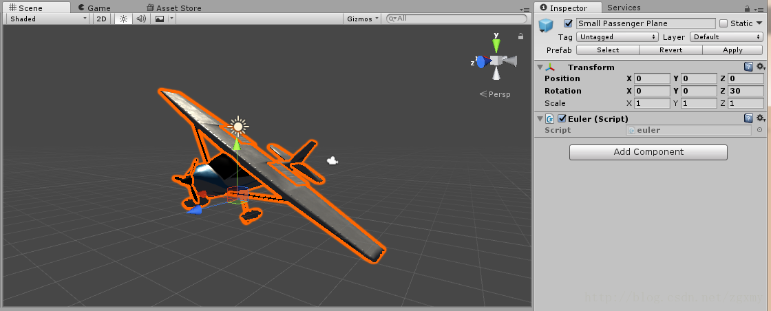 Unity中的rotation是(φ, θ, ψ) (zxy