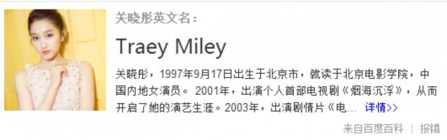 关晓彤叫Traey Miley