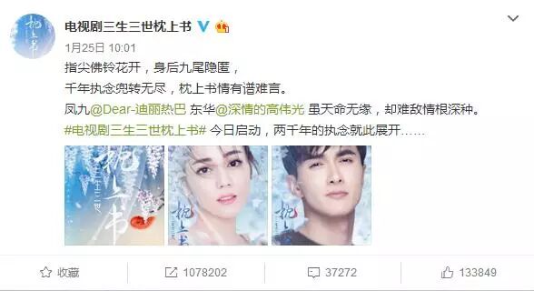 热巴携手高伟光主演三生三世枕上书,杨幂赵又廷也合体发糖了!